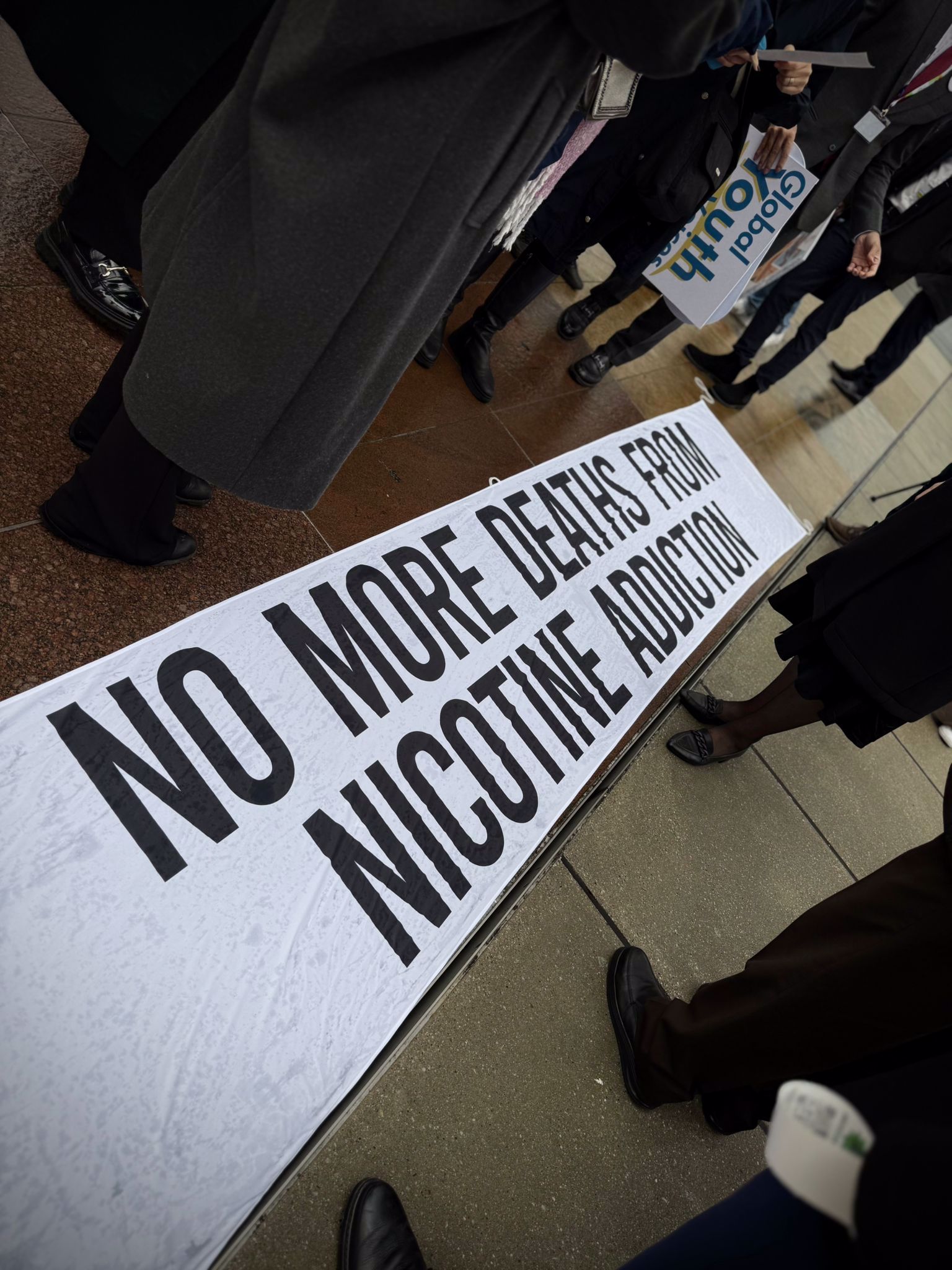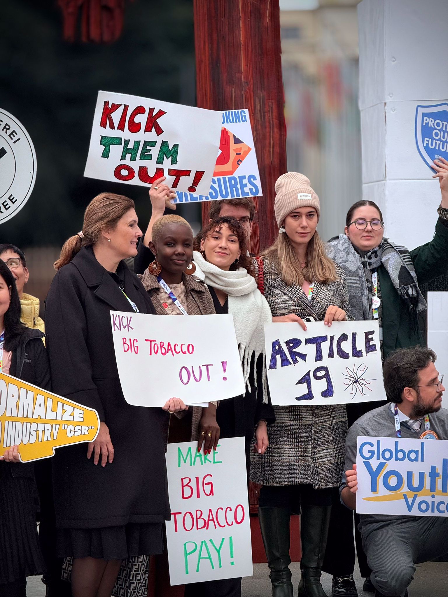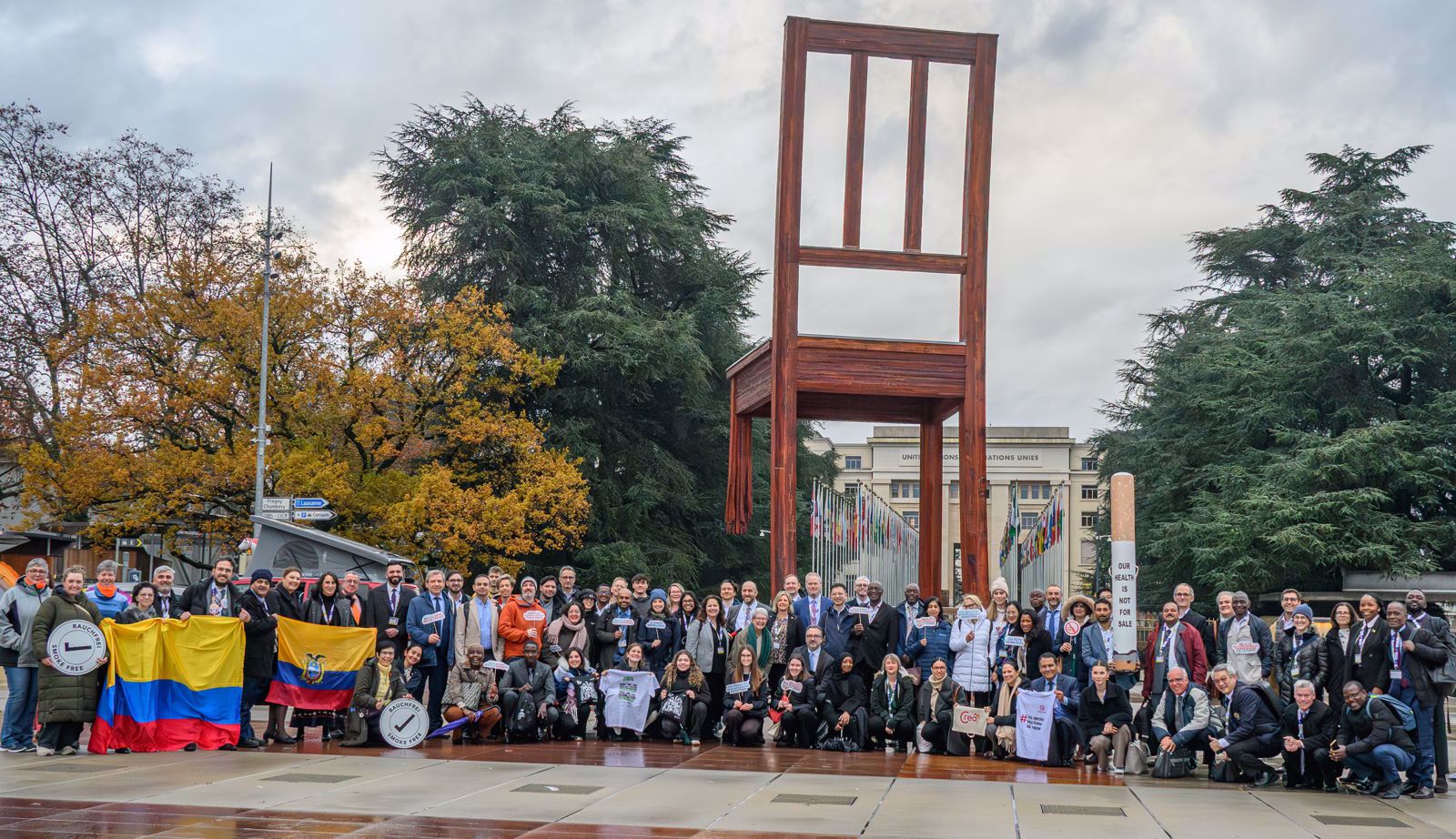 Over two days, young advocates from across the world carried out a series of coordinated activities at Place des Nations in Geneva, next to the emblematic Broken Chair installation. These actions ranged from visual art and live performances to traditional and social media outreach. Beginning on Sunday evening, participants held a candlelit gathering and displayed messages calling attention to the tobacco industry’s manipulative practices. They also urged stronger measures to protect public health and safeguard young people from all tobacco products, including electronic cigarettes.